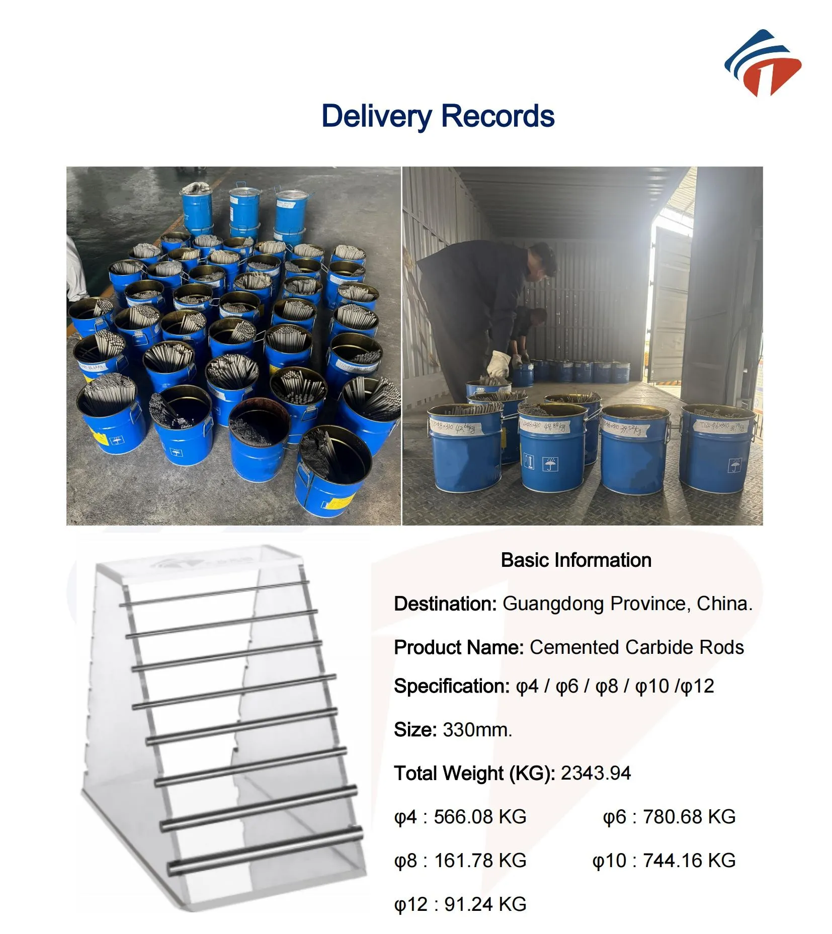 2349KG Tungsten Carbide Rods Delivery Sa GuangDong.
